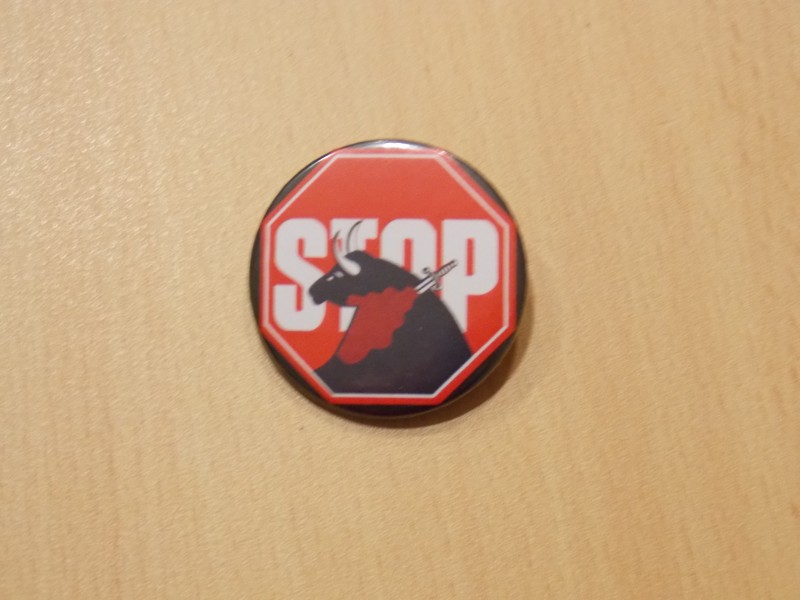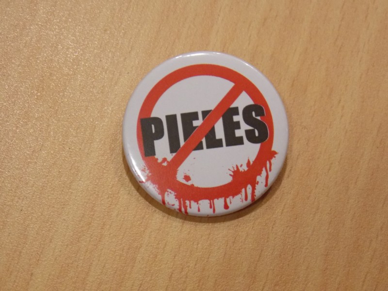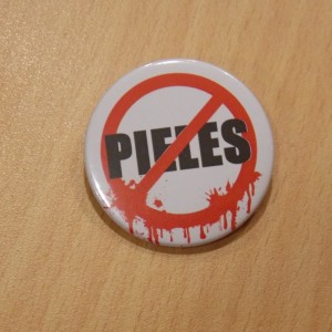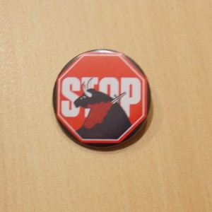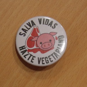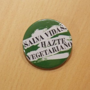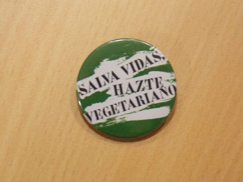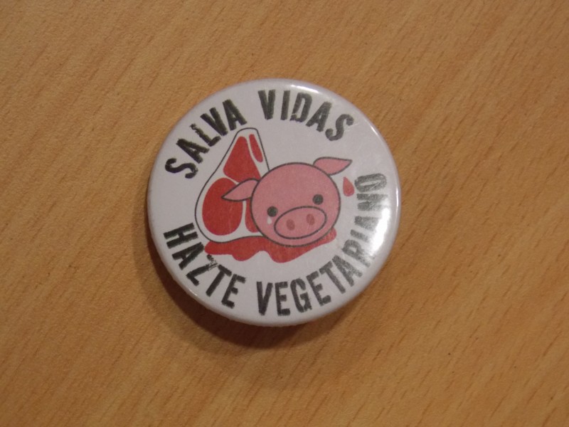 Chapa ''Salva vidas, hazte vegetariano'', carne